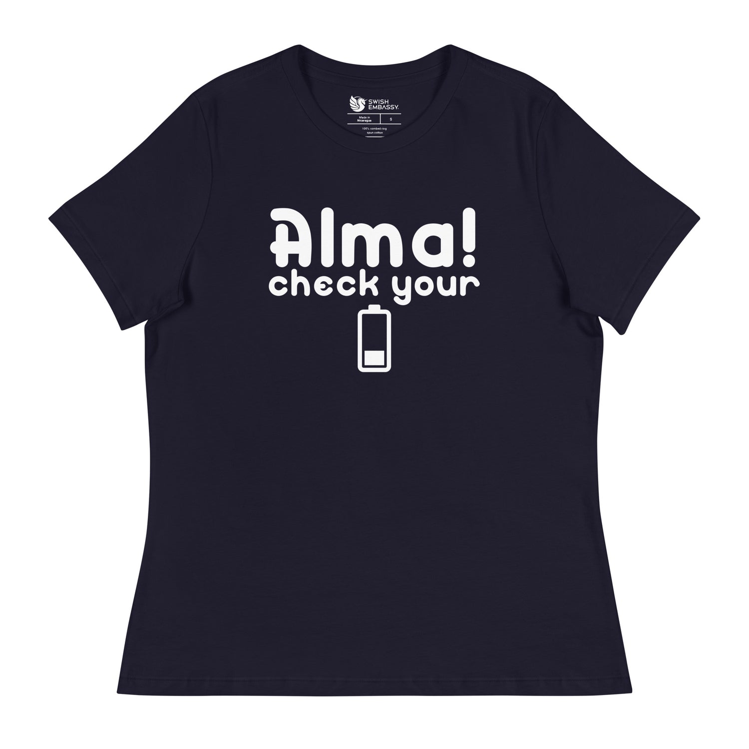 Check Your Battery (Women's Relaxed T-Shirt) - Navy / S est en rupture de stock et sera expédié dès qu’il sera de retour en stock.