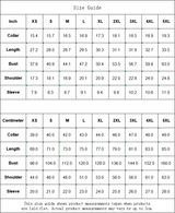| Button-Up Shirts | 2XS | XS | S | M | L | XL | 2XL | 3XL | 4XL | 5XL | 6XL |