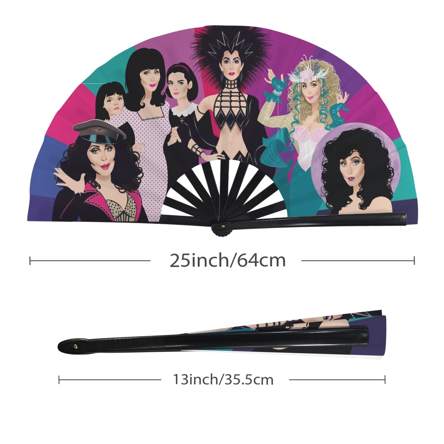 - Big and bold: 25" wide when open, 13" when folded (63.5 cm open, 33 cm folded).